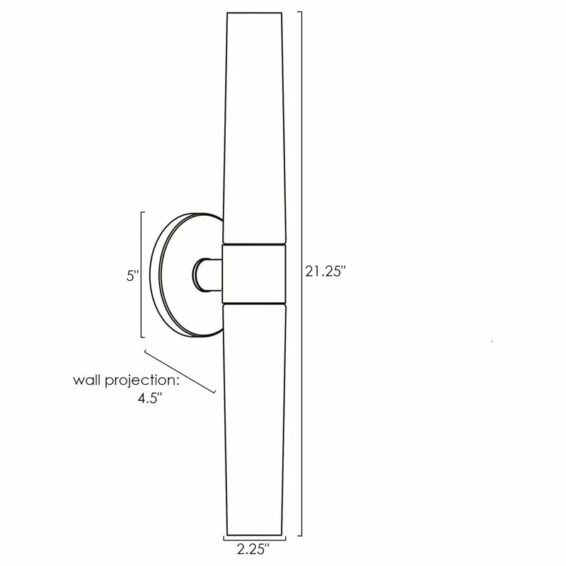 - DIMENSIONS: Bathroom Wall Sconce: 21.25″ (H) x 5″ (L) x 4.5″ Projection from wall, Back plate: 5″ (D) x 0.5″ (H), Frosted Shades: 9.5″ (H) x 2.25″ (H)