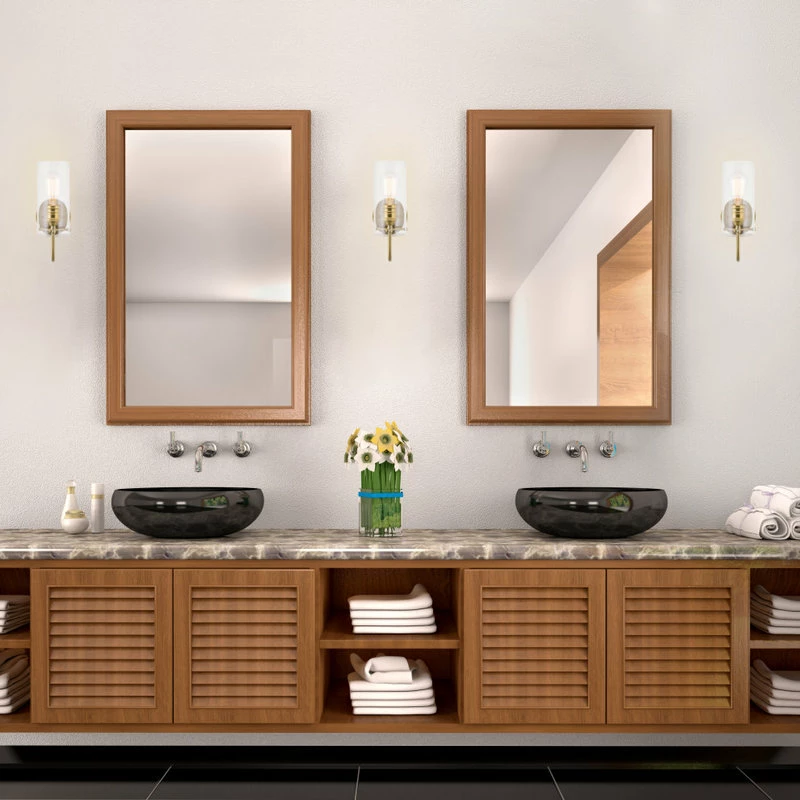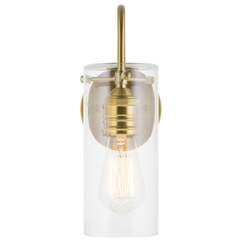 - STUNNING DESIGN: Gorgeous wall light showcases a warm brass finish, clear cylindrical glass shade & versatile up/down installation. With simple clean lines, easily install this light to fit multiple styles including traditional, industrial & contemporary