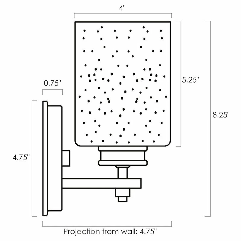 - DIMENSIONS: Wall Sconce: 8.25″ (H) x 5″ (L) x 4.75″ Projection from wall, Back plate: 4.75″ (D) x 0.75″ (H), Shade: 4″ (D) x 5.25″ (H)