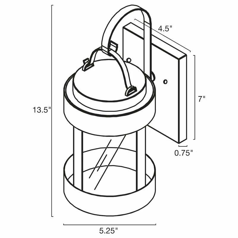 - DIMENSIONS: Indoor/Outdoor Wall Sconce: 13.5″ (H) x 5.25″ (L) x 7.5″ Projection from wall, Back plate: 4″ (H) x 0.75″ (W) x 4.5″ (L), Inner Glass Shade: 7.25″ (H) x 4.25″ (D), Outer Shade: 7.75″ (H) x 6″ (D)
