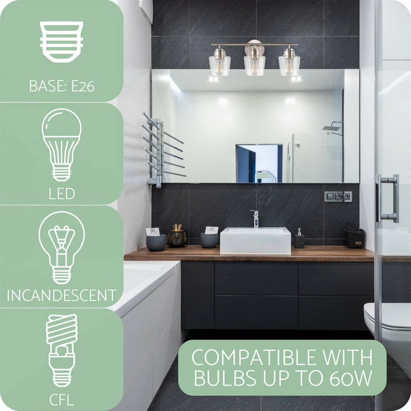 - ETL LISTED FOR YOUR SAFETY: ETL listed for damp locations. Uses (3) LED, CFL or up to 60W traditional incandescent medium base bulbs. Bulbs sold separately
