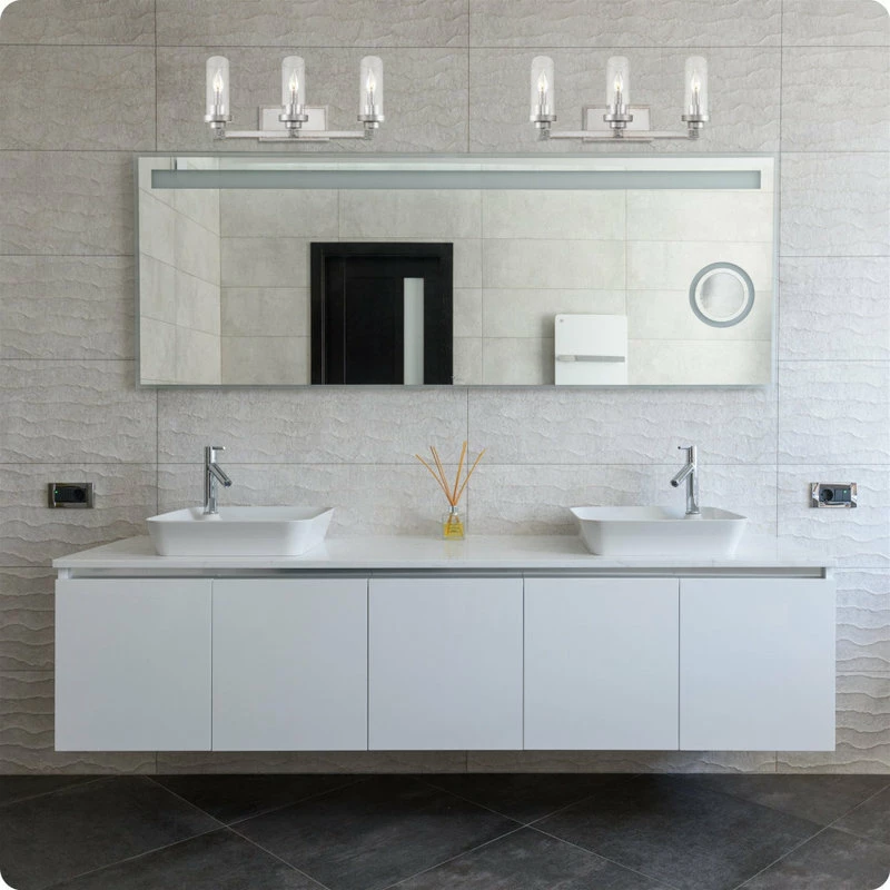 - BRIGHTEN YOUR SPACE: Mount this versatile, easy to install bathroom lighting fixture over mirrors or vanities, in a powder room or half bath, over a kitchen sink or bar area, dress up a hallways or in hospitality settings. Dimmer compatible