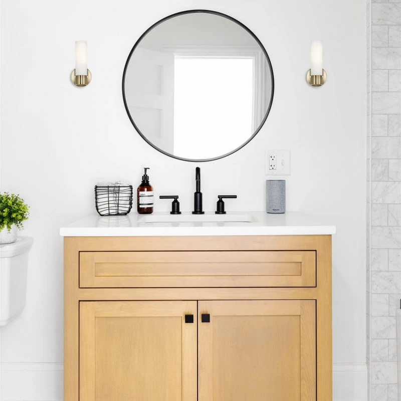 Kira Home Sol 10″ modern wall sconce features a smart and versatile 1-light design and can be mounted in either an up or down direction. The sturdy, frosted glass shade is paired with a complementary cool brass finish, delivering a minimalist and polished look. Made with solid materials, Sol is durable and high quality. Safe for damp locations, mount in the bathroom or powder room alongside the vanity mirror or outdoors under a covered porch. With its compact design, frame doorways and entryways, or line hallways and corridors. Sol works perfectly in movie or theater rooms as well. Unlike our low priced competitors, Sol is UL approved for your safety.