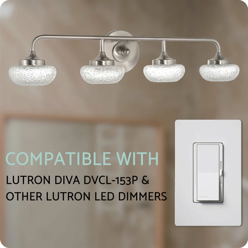 - VERSATILE: Mount this easy to install fixture in different areas and decor including industrial and contemporary. Place above bathroom mirrors, vanities or in hospitality settings. Compatible with Lutron Diva DVCL-153P dimmers and other Lutron LED dimmers