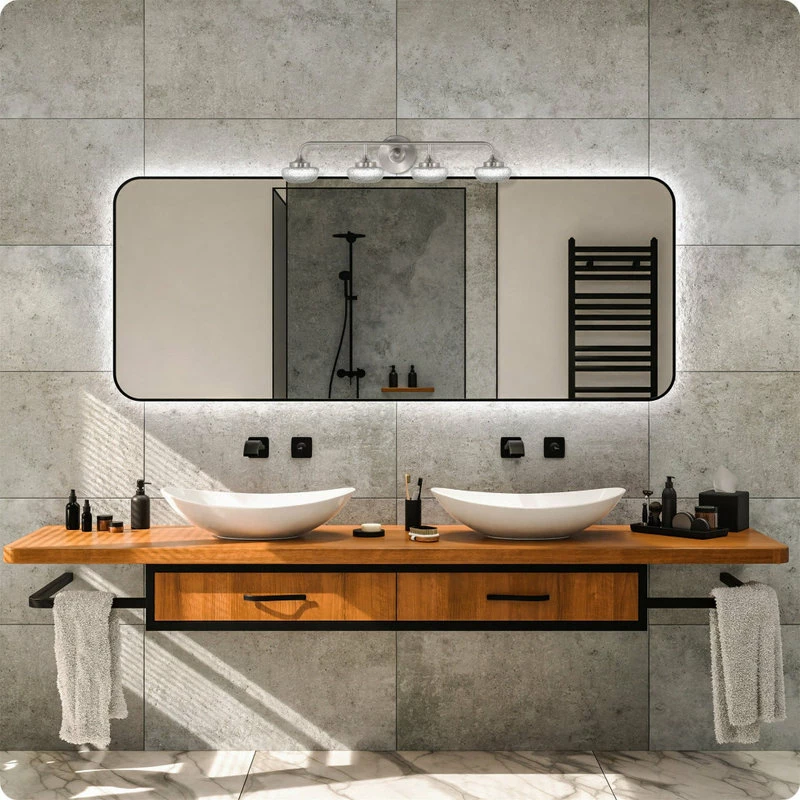 Kira Home’s Soleil 29″ 4-light LED bathroom/vanity light is simple yet versatile in appearance, perfect for any modern home or hospitality setting. Dynamic in design, Soleil pulls from several different styles, making it suitable for a wide range of decor. The etched glass globe shades gracefully diffuse the LED light, emitting ample and flattering lighting. Additionally, the integrated LED lights (included) are more energy efficient and have lifespans much longer than other bulbs, saving you the trouble of frequent replacement. Transform your bathroom, vanity or powder room into a cozy setting with Soleil today! Unlike our low priced competitors, Soleil is ETL approved for your safety.