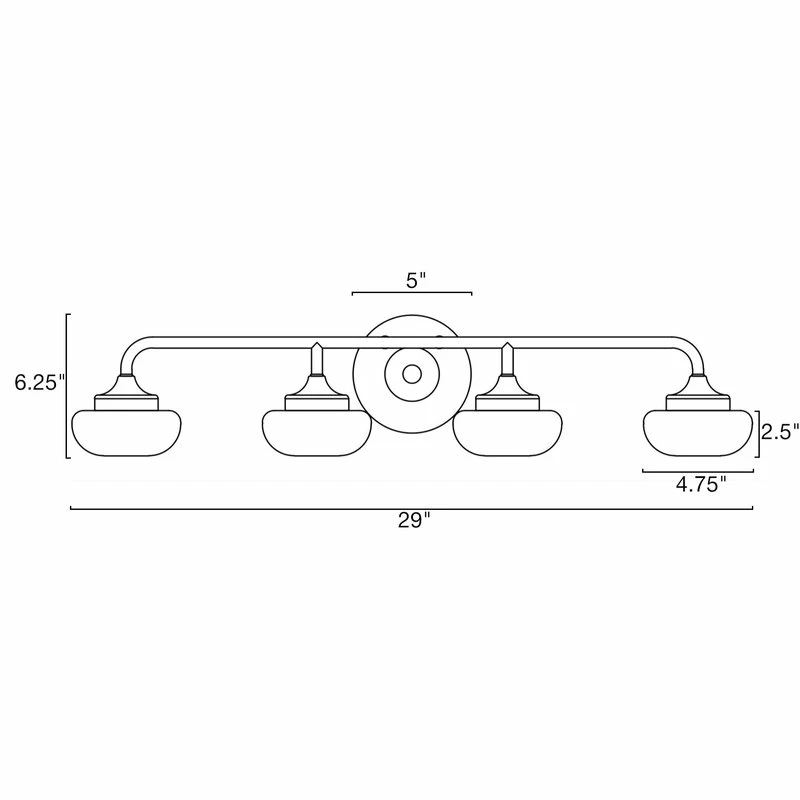 - DIMENSIONS: Bathroom Light: 6.25″ (H) x 29″ (L) x 6″ Projection from wall, Backplate: 5″ (D) x 0.75″ (H), Glass Shades: 2.5″ (H) x 4.75″ (D)