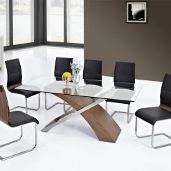HEFX Furniture 7-Piece Sena Metal Dining Glass Counter Height Table, 6 Swivel Chair Cherry