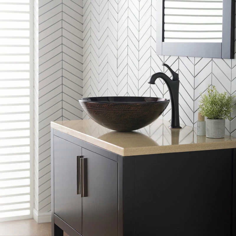 Upgrade your bathroom with a KRAUS vessel sink and faucet combo. The glass vessel sink pairs perfectly with the beautiful bathroom faucet, creating a striking centerpiece that complements any bathroom decor. Comes in a range of colors for a look that’s uniquely yours