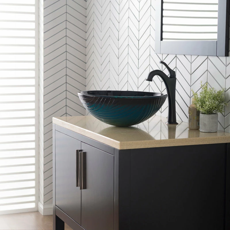 Upgrade your bathroom with a KRAUS vessel sink and faucet combo. The glass vessel sink pairs perfectly with the beautiful bathroom faucet, creating a striking centerpiece that complements any bathroom decor. Comes in a range of colors for a look that’s uniquely yours