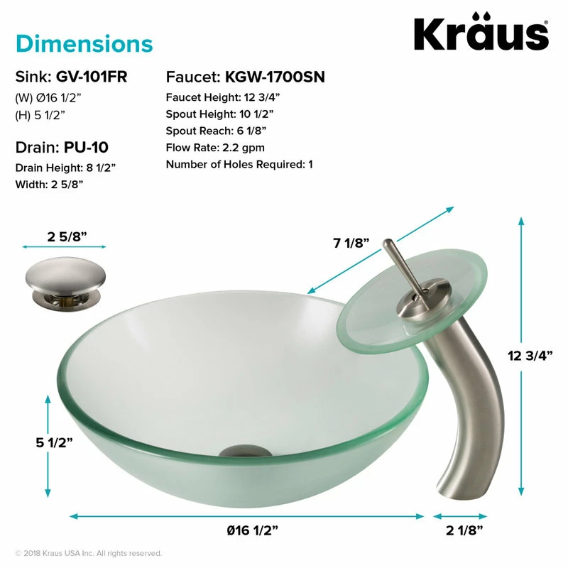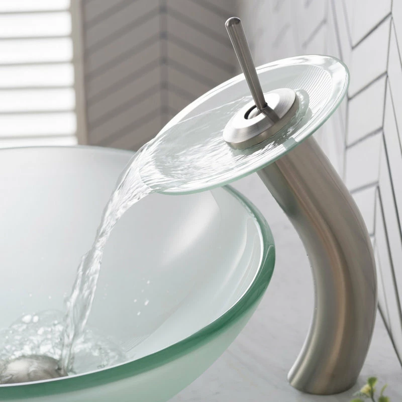 - Product: KRAUS Waterfall Bathroom Faucet with Matching Glass Disk