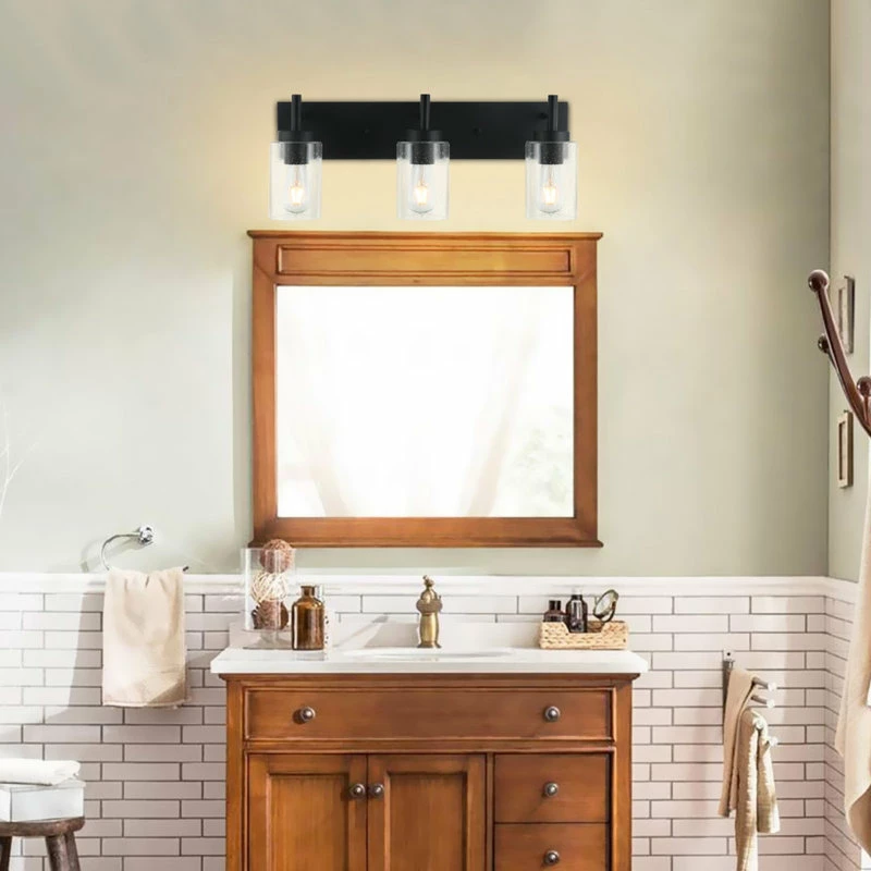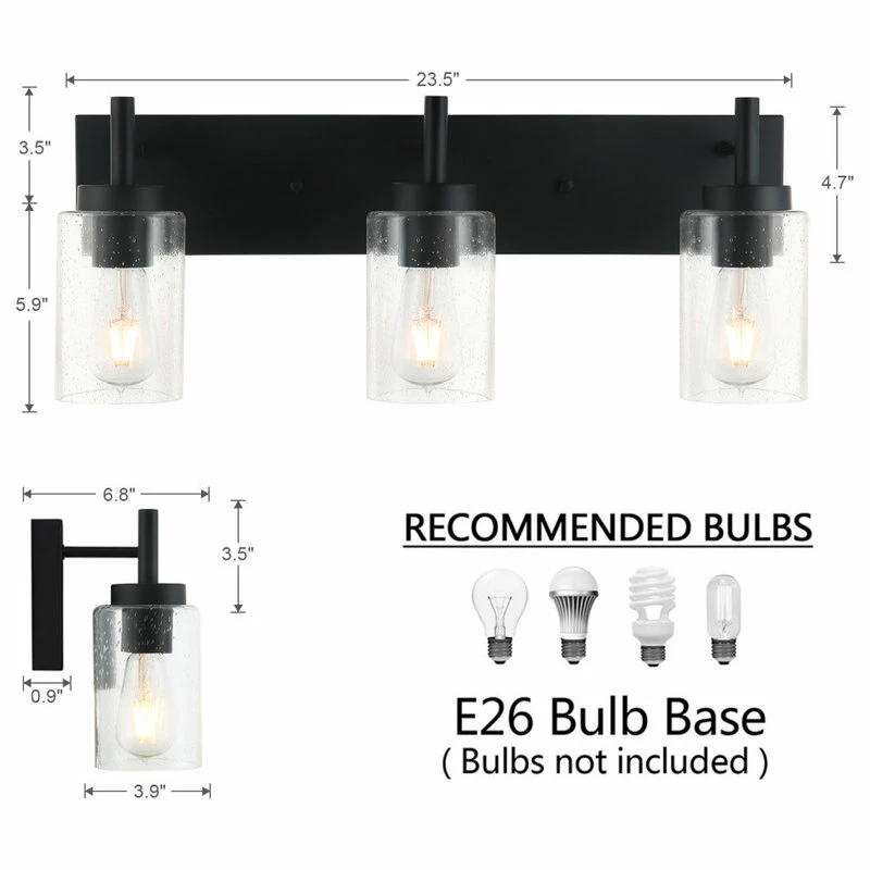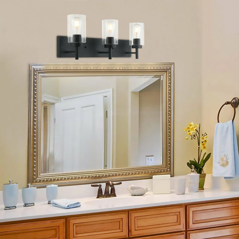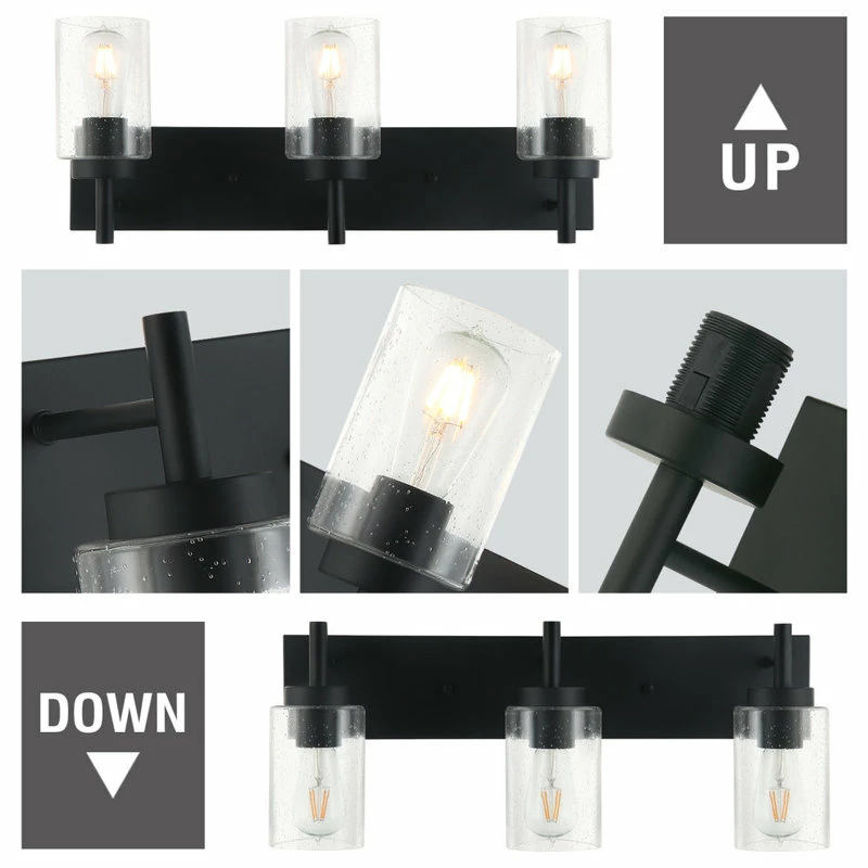This 3 lights bathroom vanity light fits in a variety of interior styles and decors, ranging from rustic/farmhouse to industrial and much more. It features a stunning black finish and standout bubble glass shade to spruce up your home. Includes all mounting hardware. This bathroom vanity light fixture can be mounted in an upward or downward direction quickly and easily.