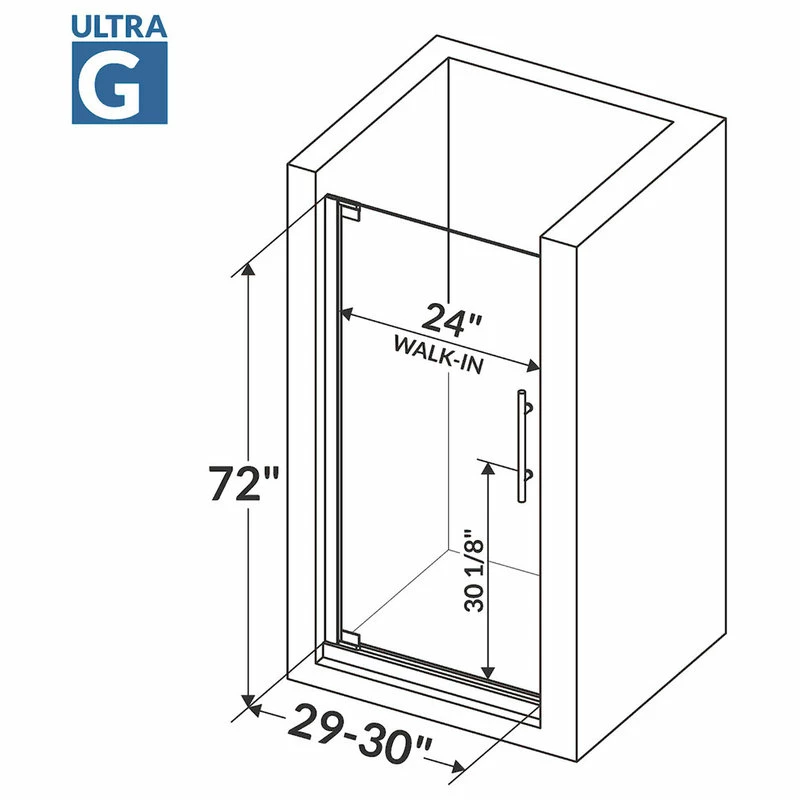 - Style: swing-out pivot mounted shower door