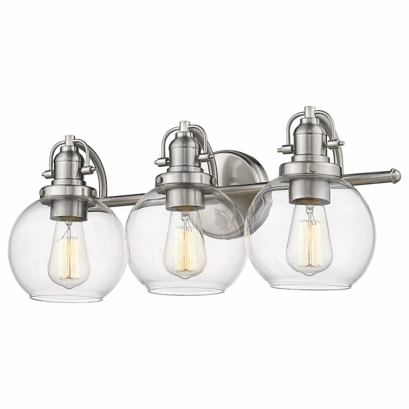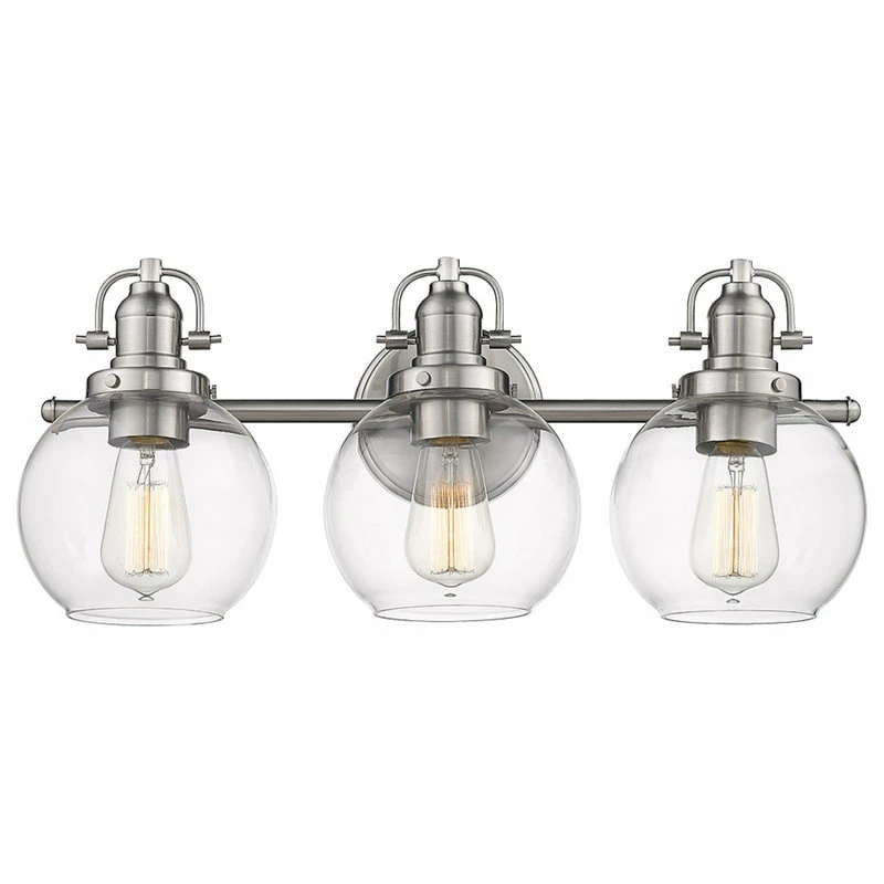SKU: VA619SN-505 Categories: Bathroom Vanity Lighting, Lighting, Wall Lighting Tags: Apartment vanity light, Bath light, Bathroom lighting, Clear glass vanity, Over mirror nickel light, Retro three light bath, Silver vanity light, Simple retro 3 light bath