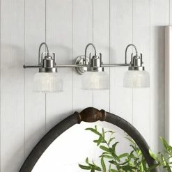 A Touch Of Design Brushed Nickel 3-Light Bathroom Vanity Light With Textured Glass