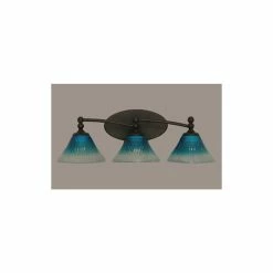 Toltec Lighting Capri 3 Light Bath Bar In Dark Granite, 7″ Teal Crystal Glass