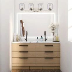 Vanity Art LLC Light Wall Sconce, Satin Nickel With Clear Glass, Satin Nickel, 4-Light