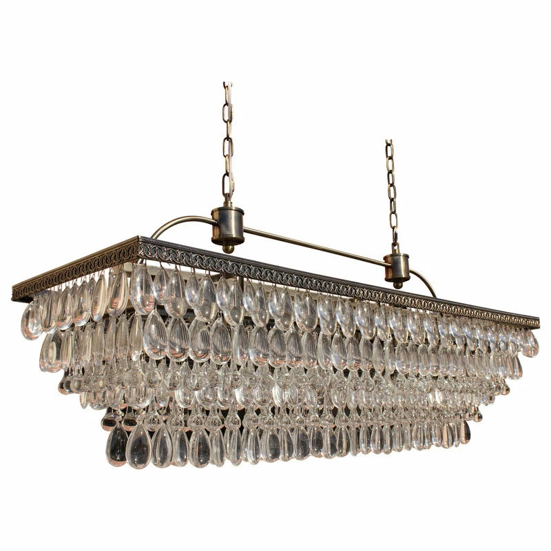 This beautifully unique rectangular chandelier captures your attention and lights up your home! This gorgeous chandelier is accompanied by 10 feet of matching double chain and finished off in glistening crystals that sparkle from every angle.