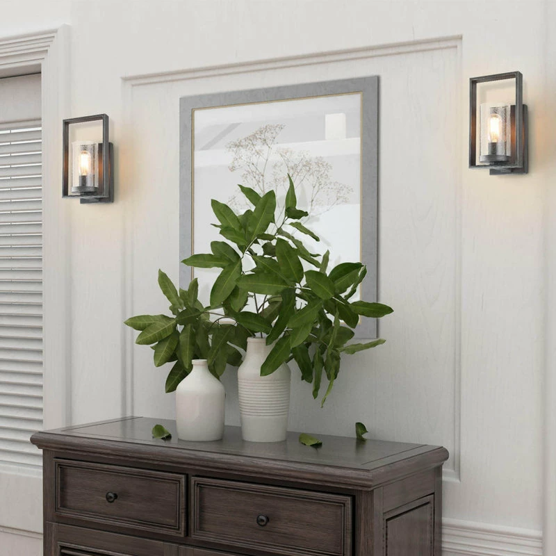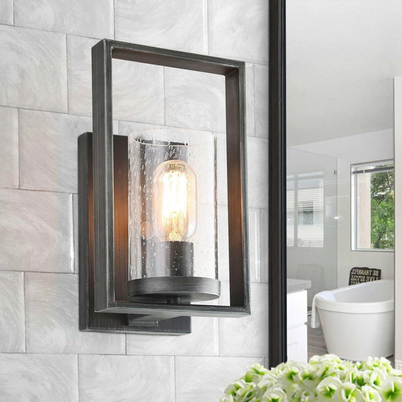 Bring a handsome look to your luminary ensemble with this vanity light. Clean, graceful lines of the arms and glass shades define this light fixture. The clear outer seeded glass shades creates clean and unique designs. Brightening the room is a breeze when you have this light illuminating.