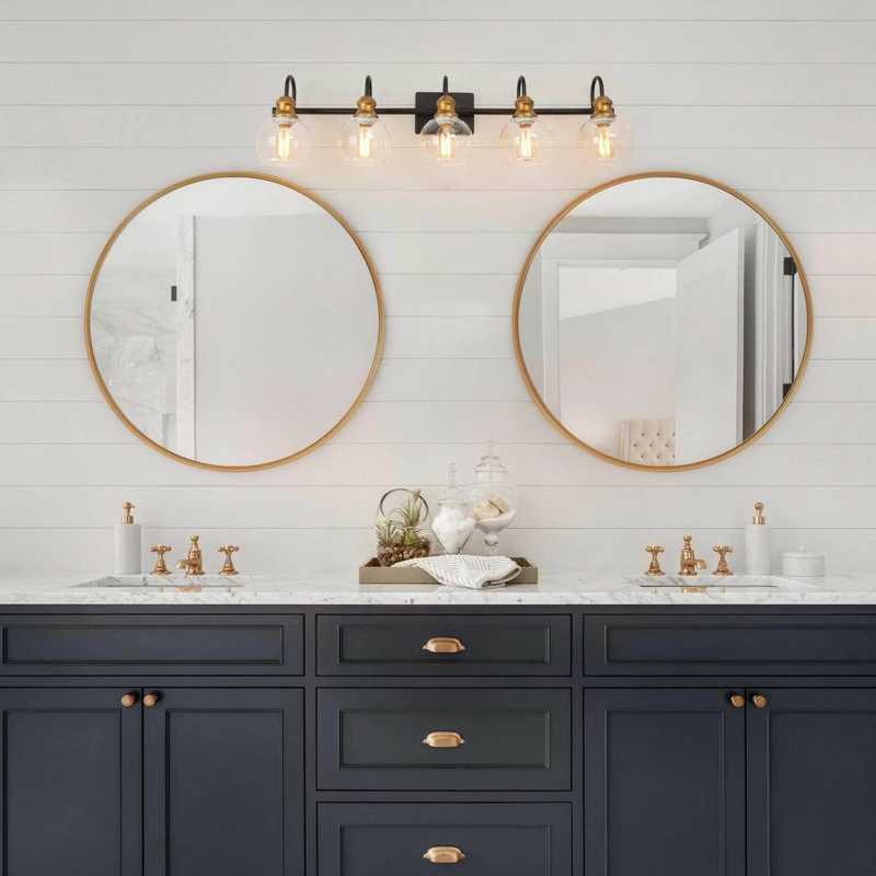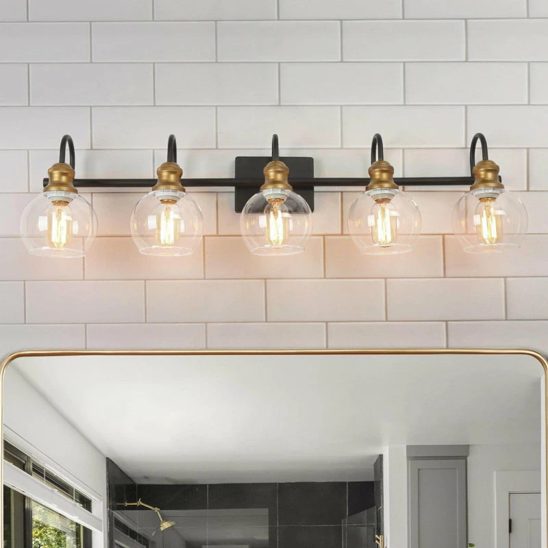 The LNC features a five-lamp bathroom vanity lamp with a unique geometric aesthetic C a stylish mix of deep bronze and brushed gold finishes, placing the ideal soft ambience over the mirror to illuminate the room. This sleek version of dark bronze contemporary contemporary with brushed gold socket heads gives this table lamp a classic and contemporary feel, and the pot-shaped shade extends the light and exudes a solid sense of structure and style.