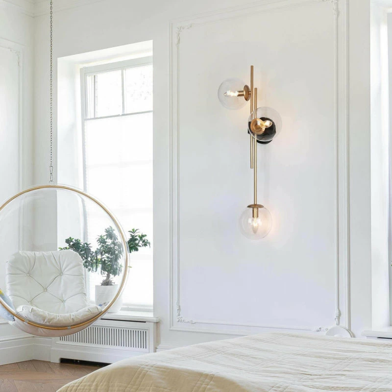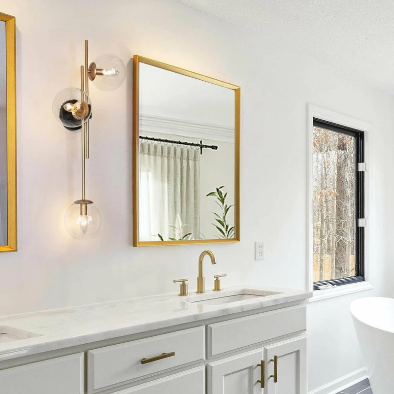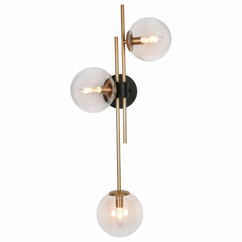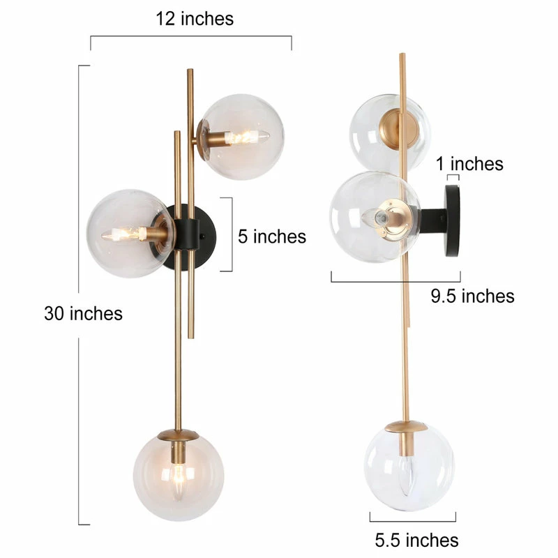 This unique modern design 3-light wall light from LNC lighting features clear globe glass shade and durable iron with matte gold finish. Perfect modern gold wall sconce for bathroom, vanity light, living room, kitchen. Besides, this modern 3-light wall light is compatible with a dimmer switch (not included), so it is allowed to make the most of your lighting.