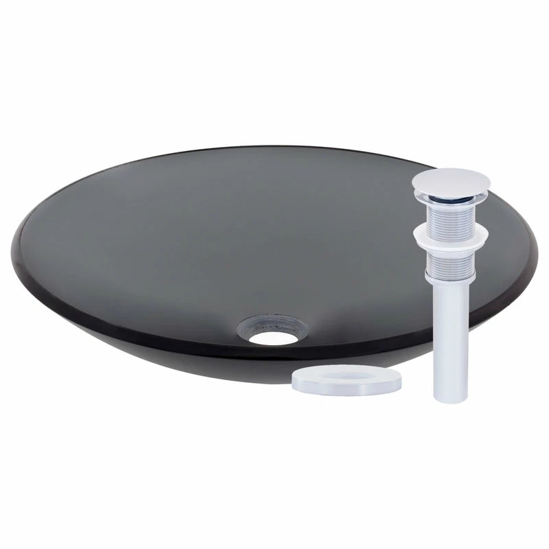 - Clear black low profile glass vessel sink provides the perfect balance of functionality and aesthetic appeal