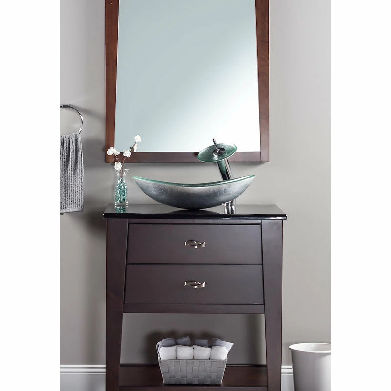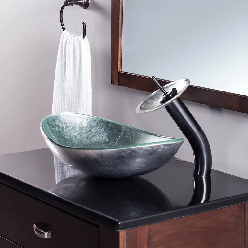 This unique vessel is one of Novatto’s finest. Constructed of high tempered glass in an elegant slipper shape, the Argento Oval has a silver foil-painted bottom. Novatto uses advanced technology to produce beautiful glass vessel sinks with unmatched structural integrity and longevity. Constructed of thick 1/2-inch high-tempered glass, this sink will add a punch of cool silver color to your decor.