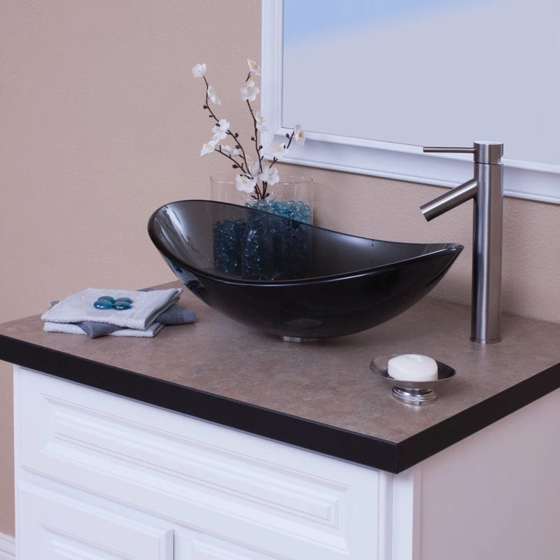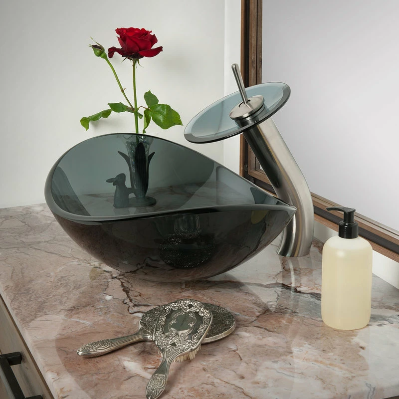 As an industry leader in glass vessels, Novatto uses advanced technology to produce unique vessel sinks with unmatched structural integrity and longevity. Constructed of thick 1/2-inch clear, bluish-grey high tempered glass, the Bigio has a look of classic understated elegance.