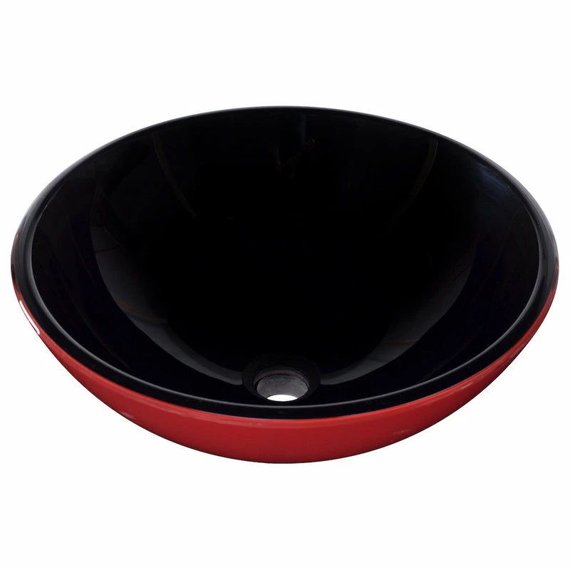 With red and black in perfect harmony, this glass vessel is perfect for a contemporary bath. As an industry leader in glass vessels, Novatto uses advanced technology to produce unique glass basins with unmatched structural integrity and longevity. Constructed of high tempered glass in a classic round shape, the Catalonia has a sleek look with its solid red exterior and black interior. For best cleaning results, a soft cloth with mild soap and water or a non-abrasive glass cleaner is recommended. Made with the highest standards of quality and creative design, Novatto sinks add art and function to any bath or powder room at an affordable price. Suggested Novatto pop-up drains: PUD-ORB (oil rubbed bronze), PUD-BN (brushed nickel), or PUD-CH (chrome). No mounting ring is needed. Just add water and enjoy Novatto’s Limited Lifetime Warranty. Supreme packaging and boxing ensure damage-free delivery.