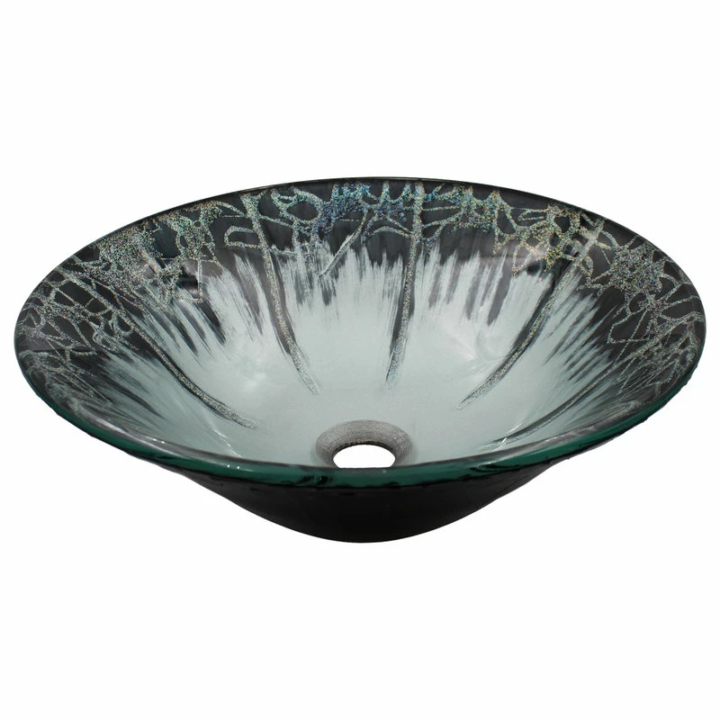 The Credere vessel sink is strikingly beautiful. From Novatto’s exclusive hand painted vessel collection, it adds a touch of style to any bath. This glass vessel will enhance and harmonize the look of your bath by unifying color and textural design. Constructed of high tempered glass, this round vessel sink has a unique hand-painted design of blue and grey with some sparkle. Novatto uses advanced technology, including computerized glass processing, to produce glass basins with unmatched structural integrity and longevity. The sink has a standard 1.75-inch drain opening. The set includes a matte black pop-up drain and mounting ring.