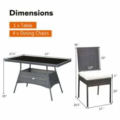 Costway 5 PCS Patio Rattan Dining Set Glass Table High Back Chair Mix Brown