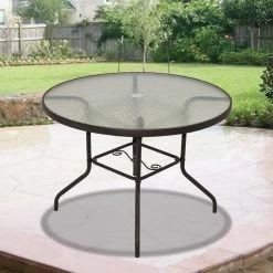 Rio Brands Inc Rio Brands Sienna Metal Round Patio Glass Top Table, Brown, 40-Inch