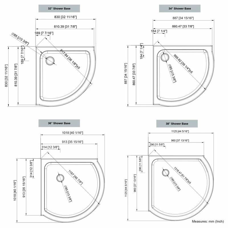 - Low profile 4-in high acrylic base with corner drain and flanged on 2 sides for acrylic walls (walls included)