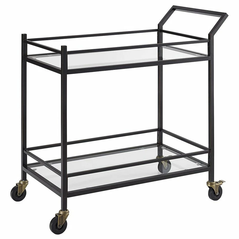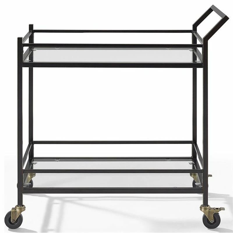 Stylish and modern, this bar cart is an eye-catching addition to any home. The sturdy steel frame and tempered glass shelves create a simple silhouette that works with a variety of décor aesthetics. Fitted with four casters, this bar cart is a flexible piece that brings “spirit” to any room in your home.