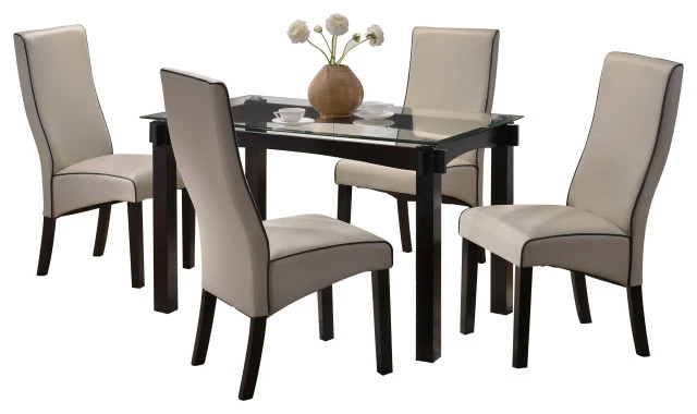 Pilaster Designs – Wood and Glass Dining Dinette Set (Table & 4 Chairs, Gray)Wood and Glass Dining Dinette Set (Table & 4 Chairs, Gray). Complete Your Dining Room Or Kitchen With This Elegant Glass top Pilaster Designs dinette set. This Versatile Dining set Creates An Inviting Atmosphere In Your Dining Room While Also Radiating a Subtle Elegance. In addition your guests will just love to sit into these pretty and fabulously comfortable chairs.Key Features: Features a table and 4 chairs