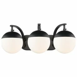Golden Lighting Dixon 3-Light Bath Vanity, Black, Opal Glass And Black Cap