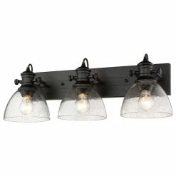 Golden Lighting Hines Bath Vanity, 3-Light, Matte Black, Seeded Glass, 25.25″W