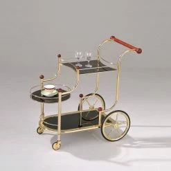 Acme Furniture Acme Serving Cart In Golden Plated And Black Glass Finish 98006