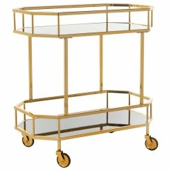 Safavieh Silva 2-Tier Octagon Bar Cart, Brass, Tinted Glass