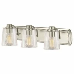 Destination Lighting Industrial 3-Light Bathroom Light With Clear Glass In Satin Nickel