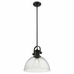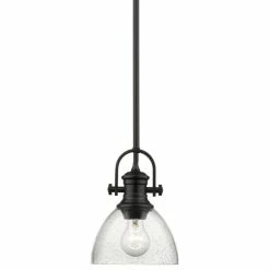 Golden Lighting Hines Mini Pendant, Black, Seeded Glass
