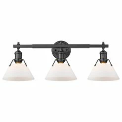 Golden Lighting Orwell Bath Vanity, 3-Light, Matte Black, Opal Glass Shade, 27.25″W