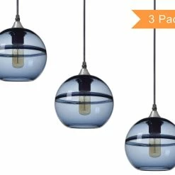 Casamotion Unique Optic Hand Blown Glass Pendant Lights, Brushed Nickel, Set Of 3, Blue