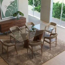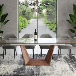 Vig Furniture Inc. Modrest Babia Modern Smoked Glass And Walnut Extendable Dining Table