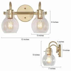 LNC Lighting LNC 2-Light Modern Matte Gold Bell Shade Clear Glass Bathroom Vanity Light