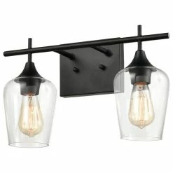 Ecopower Light LLC Farmhouse Bathroom Vanity Lights Clear Glass Sconces, Matte Black, 2-Light