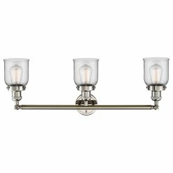 Innovations Lighting Small Bell 3-Light 30″ Bath Fixture, Polished Nickel, Glass: Clear
