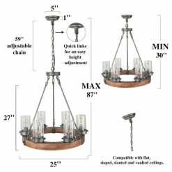 LNC Lighting LNC 6-Light Farmhouse Wagon Wheel Wood And Seeded Glass Shade Chandelier