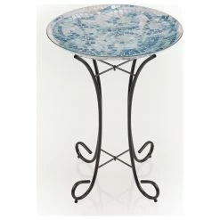 Alpine Corporation 18″ Blue Swirl Mosaic Glass Birdbath With Metal Stand
