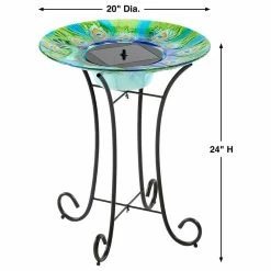 Smart Living Home & Garden Argus Peacock Glass Solar Birdbath With Metal Stand (1/cs)