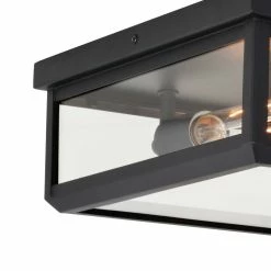 Vaxcel Kinzie Black Outdoor Square Flush Mount Ceiling Light With Clear Glass